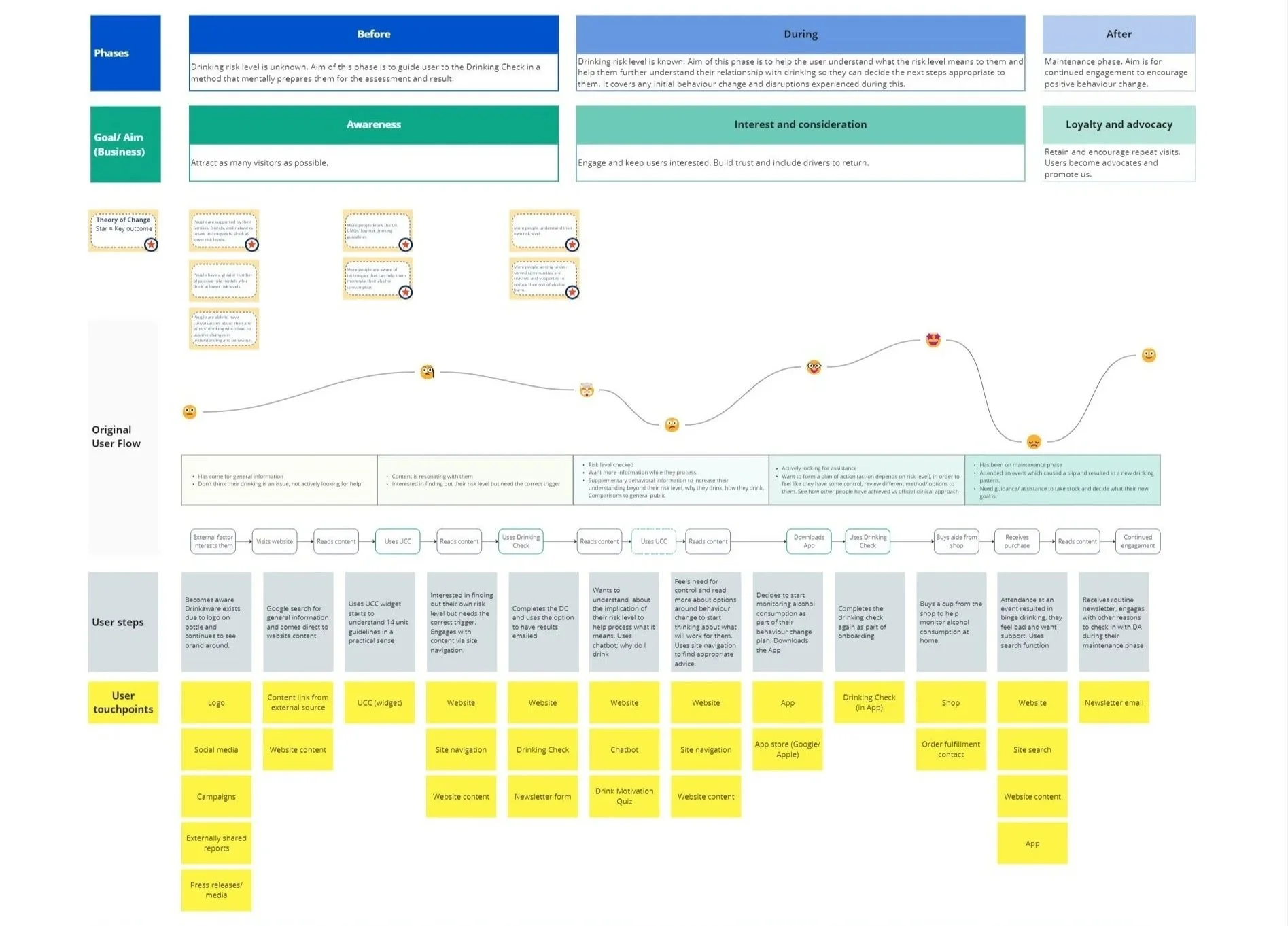 This project involved creating a comprehensive service blueprint for Drinkaware, a UK charity with a mission to reduce alcohol-related harm.